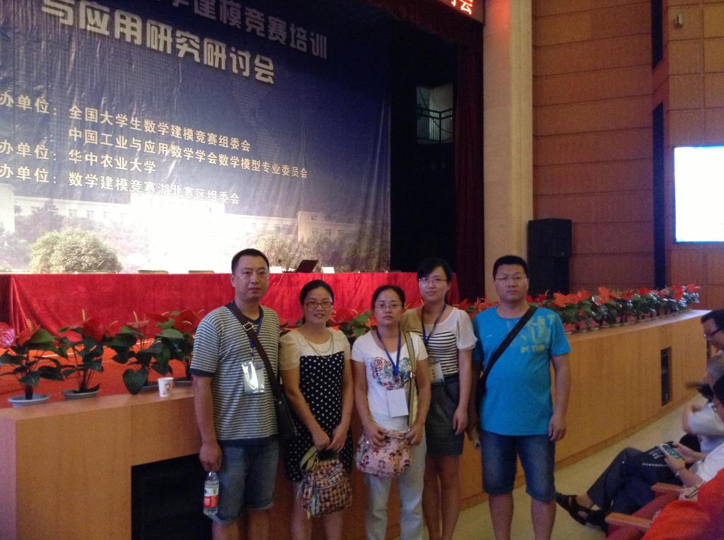 7月31日—8月3日,全国大学生数学建模竞赛组委会和中国工业与应用数学学会数学模型专业委员会联合举办的“2014年全国数学建模竞赛培训与应用研究研讨会”在湖北武汉举行。本次培训会议吸引了来自全国近300多所高等院校,共700余名代表参加。我校理学院数学系倪晋波、李强副教授,耿显亚博士以及张丽丽、潘洁、詹倩等教师参加了本次会议。