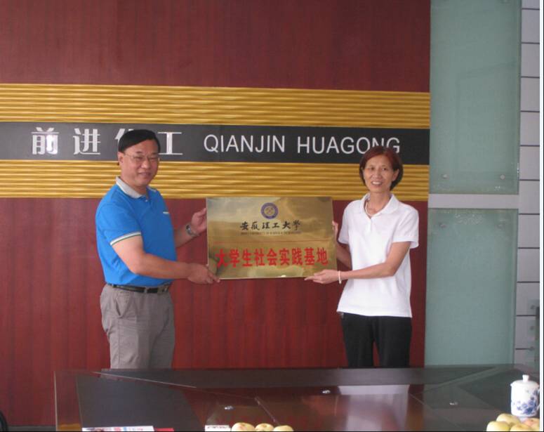 8月14日上午,安徽理工大学大学生社会实践基地挂牌仪式在河南前进化工科技集团股份有限公司进行。化学工程学院副院长张洪流和河南前进化工科技集团股份有限公司副总经理郭守阁共同为大学生社会实践基地揭牌。