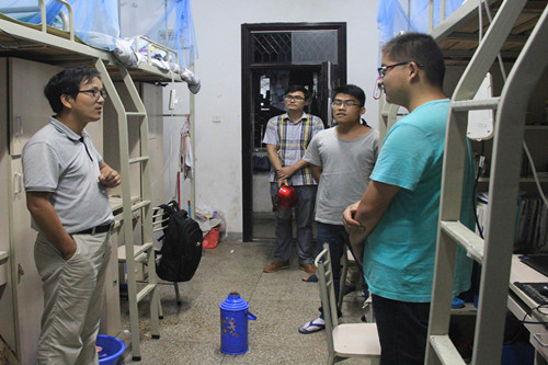 陪同学生处副处长黄晟走访高层公寓学生宿舍