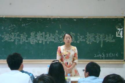 8月31日,地球与环境学院在北区红楼308教室举办2014年暑期“三下乡”社会实践评比汇报会。学院团委书记刘园园、各年级辅导员担任评委,各实践团队代表以及各班级学生代表参加汇报会。