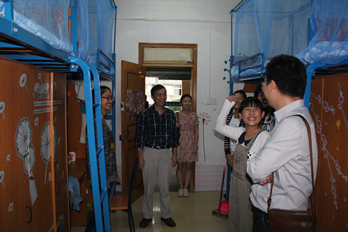 9月12日下午,外国语学院新生接待工作已基本结束。为了解新生情况、帮助新生尽快适应大学生活,学院院长束学军带领新生辅导员、班主任及辅导员助理走访新生寝室,看望新生,传达关爱。