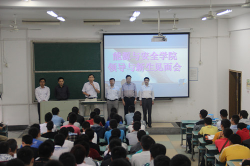 上午8:00,学院党政领导与全体新生进行了见面。学院主持工作的副院长石必明代表学院对2014级310名新生加入能源与安全学院大家庭表示热烈的欢迎,并希望2014级新同学坚持自己的选择,坚定自己的信念;学会学习,学会创新;陶冶思想情操,砥砺德行,学会做人;积极融入大学校园,丰富大学生活。