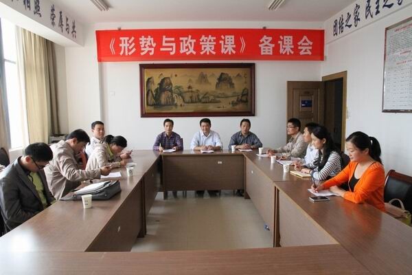 根据《教育部2014年下半年高校“形势与政策”教育教学要点》要求,本学期我校《形势与政策》课的教学内容共安排5个专题。备课会上,各位编写人员就本专题的编写情况,教学的重、难点问题等与参会教师进行了深入的探讨与交流。大家一致表示要认真备课,上好这门课。