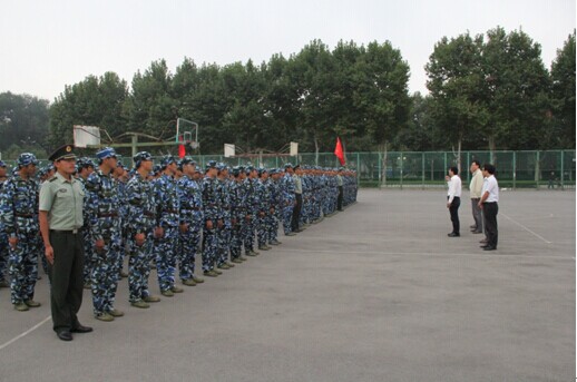 9月23日上午,能源与安全学院党政领导张勤春、石必明、戴广龙、张坤、金德一行来到北区军训现场,亲切慰问承训教官和2014级参训新生。