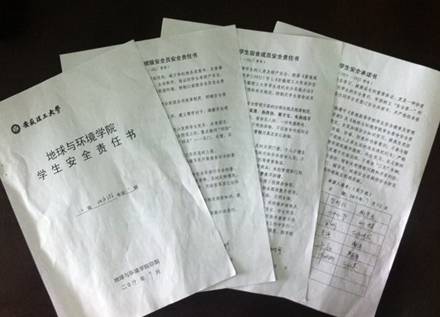 为增强学生安全防范意识,结合国庆长假学生的安全教育和管理工作,近日,地球与环境学院组织学生签订2014-2015学年3个类别安全责任书。