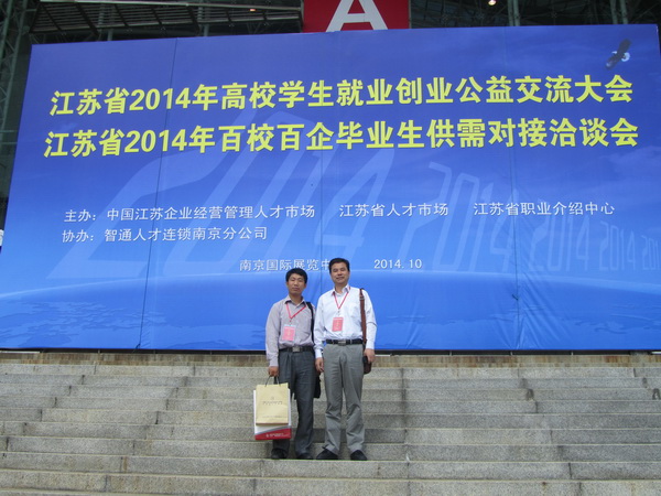 10月12日上午,由中国江苏企业经营管理人才市场、江苏省人才市场、江苏省职业介绍中心主办的“江苏省2014年百校百企毕业生供需对接洽谈会”在南京国际展览中心举办,600家企事业单位、170多家高校参会。校毕业生就业工作处处长吴照明率队参会宣传推介2015届毕业生。