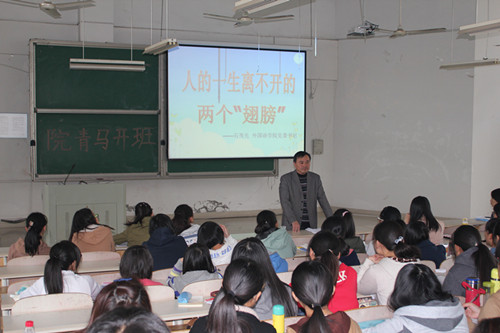 11月1日上午,外国语学院党委书记石秀光为“青马工程”培训班学员作了题为《人的一生离不开的两个翅膀》的首场报告。