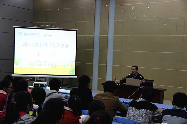 11月3日晚,医学院邀请西校区保卫科科长王江平老师在西校区图书馆2楼报告厅,为学院2014级新生举办了校园安全知识讲座。学院近300名新生聆听了讲座。医学院团委副书记罗柯主持讲座。