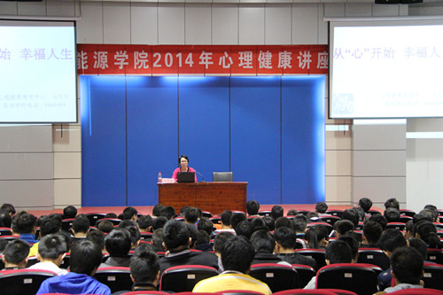 11月4日晚,能源与安全学院在北区图书馆报告厅举办大学生心理健康教育讲座,校学生处心理健康教育中心马庆玲老师应邀作了题为《从“心”开始、幸福人生》的讲座。