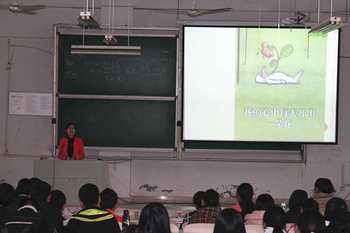 程秀霞目前正挂职于宿州市,任市教育局副局长,她在百忙之中接受了本期培训班的邀请,利用周末休息时间回到学校,为学生作了以“我的心中每天开出一枝花”为题的讲座。
