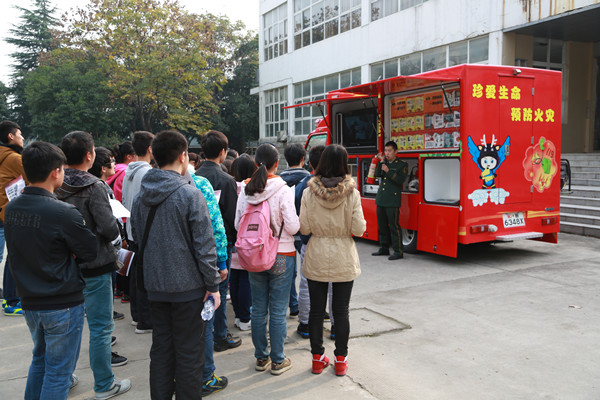 11月10日上午,应医学院团委的邀请淮南市消防支队的“卡通消防宣传车”开进西校区,为学院新生送去消防安全知识,这种新颖时尚的消防宣传方式受到了同学们的欢迎。