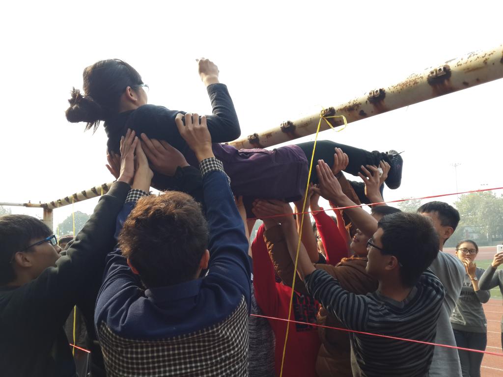 “我是第一个从最高的网格里通过的女生。开始的时候我有些害怕和担心,但为了团队的胜利,我相信我的伙伴们,绝对信任把自己的‘生命’交给了他们。”——成员B