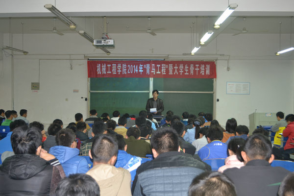 11月15日,机械工程学院2014年“青马工程”暨大学生骨干培训班在北区2301教室隆重开班。学院党委副书记徐育军出席开班仪式并为学生授课。按照课程安排,当天学院还邀请了校人才引进与专家工作处处长王先江、校学生处处长田中良、校团委副书记彭晶为全体学员授课。