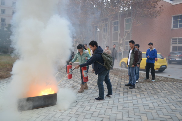第二阶段为室外灭火现场演练。在消防科科长尹胜利等指导下,就业处全体人员和学生工作助理现场体验了灭火器的使用和灭火的过程,大家受益匪浅。