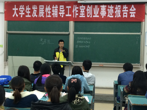 11月26日晚7:00,大学生发展性辅导工作室在北实207教室举办了一场别开生面的创业事迹报告会,邀请了大学生创业典型代表岳稀和黄炎发作为主讲,140余名对创业感兴趣的大学生参加了报告会。