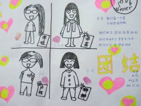 理学院辅导员冷金兰、吴秀清利用职业规划课堂和班会等形式在2014级新生中开展职业规划教育,主要是集中培养团队意识和团队建设能力。活动以宿舍为单位,将学生分成70个小组。每个小组推荐组长1人,各小组组长和全体成员以“团队建设”为主题完成一系列职业规划漫画作品。11月5日至8日,学院共收到2014级班级上交职业规划漫画作品70件。每件作品都紧紧围绕“团队建设”这一主题,队名响亮,标志新颖,寓意深刻。辅导员通过主题班会和职业规划课堂为学生提供展示团队建设作品的平台。在展示中,各团队全体成员走上讲台,大声地说出团队口号,详细分析团队标志及寓意,并分享了各自心中的理想以及理想的规划步骤,最后大家一起对未来人生发展做出了共同的约定。