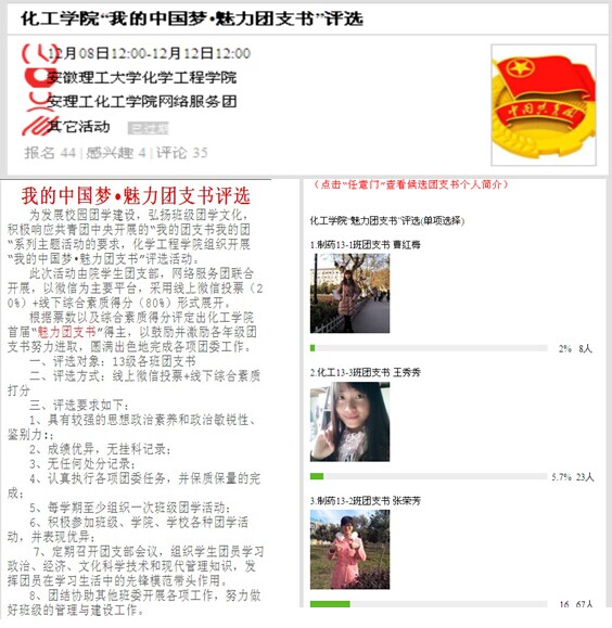 12月13日下午,为增强学院各班级团支部活力,加强基层团组织建设,化学工程学院在北区红楼308教室举办了以“我的中国梦•魅力团支书”为主题的优秀团支书评选活动。