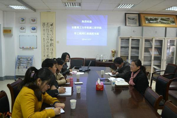 在南京工业大学机械工程与动力工程学院,调研团受到了热情接待,与学院党委副书记孙宇、团委书记王敏、辅导员多人进行了座谈交流,对该校的“口袋大学”、学生工作系统平台、学生资助、学生行为考评、大学生科技创新、文艺活动等工作进行了深入了解和交流。