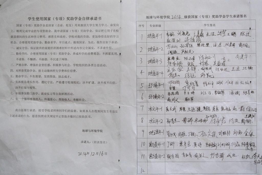 近日,国家奖助学金已陆续发放。为引导学生合理使用国家奖助学金,12月17日,地球与环境学院在北1105教室组织获奖学生签订《合理使用国家(专项)奖助学金自律承诺书》,加强获奖学生的思想教育,确保获奖学生合理使用奖助学金。