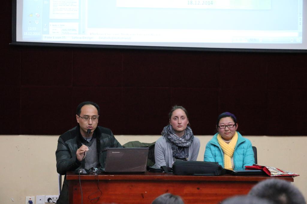 12月18日晚,测绘学院在校本部六角楼报告厅举办了德国交换生与新生交流报告会。德国东威斯特法伦-利普应用科技大学三年级本科生Natasha Meuser与我校大地测量与测量工程专业2012级硕士研究生黄璨同学作了题为《The difference between China and Germany》的交流报告。报告会由测绘学院教学科研副院长徐良骥主持,新生辅导员马晓娜,测绘工程、地理信息系统及遥感科学与技术专业的大一新生参加了报告会。