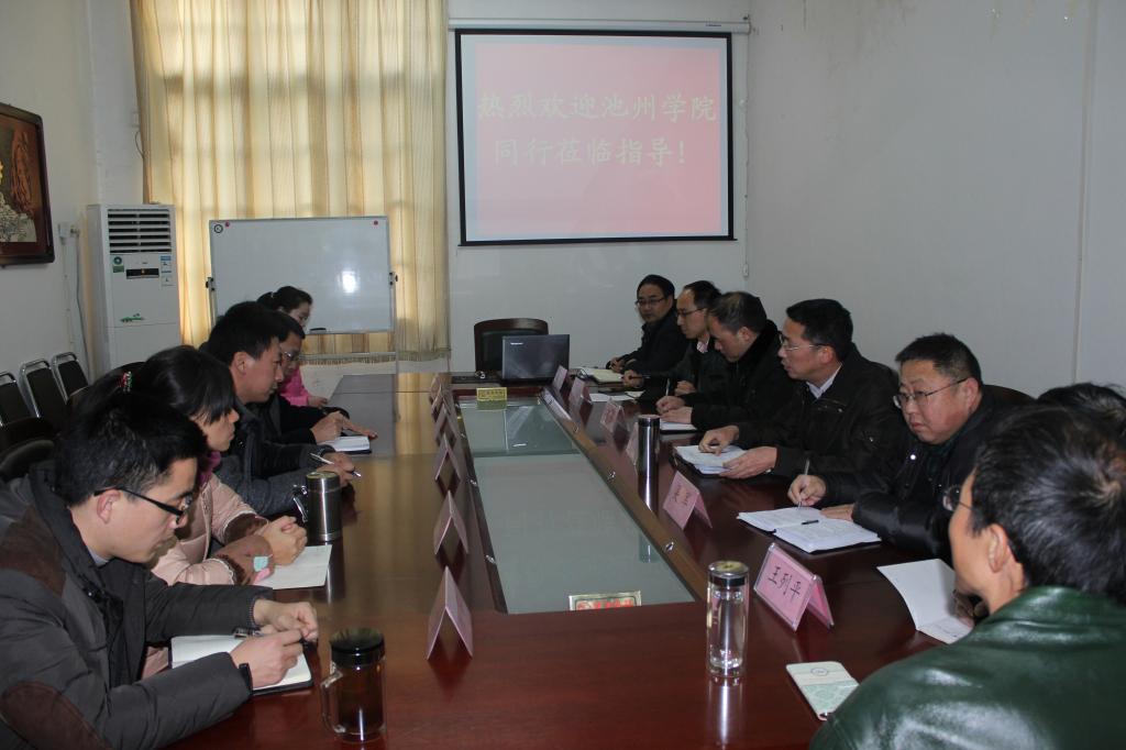 院党委书记陈艺、院长赵志根与池州学院胡文海分别介绍了各自院系的基本情况,双方就测绘工程、地理信息系统专业建设、课程设置、毕业设计、实验室建设等方面进行了全面而深入的交流。