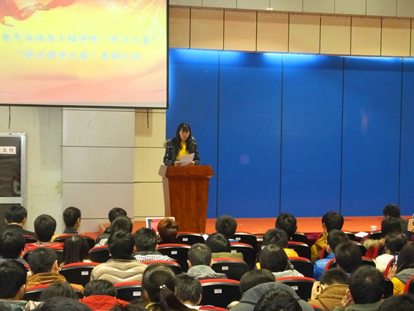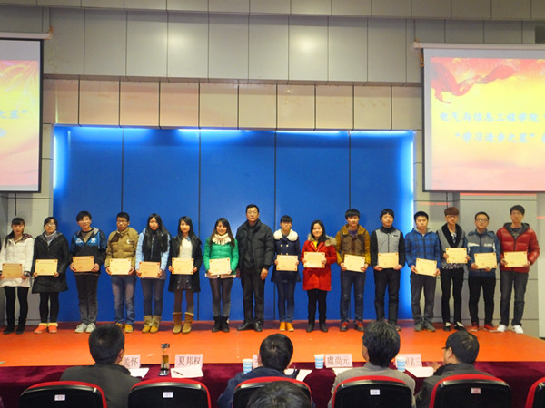 为树立榜样,表彰先进,营造比、学、赶、帮、超的良好学习氛围,12月30日,电气与信息工程学院在北校区图书馆二楼报告厅召开了 “学习之星” 、“学习进步之星”表彰大会。院长李敬兆,党委书记夏邦权,副院长虞尚元、欧阳名三,党委副书记徐关怀出席表彰会,并为受表彰的个人和集体颁奖。