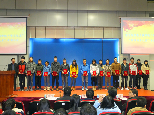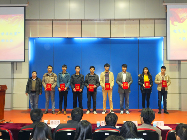 徐关怀宣读了学院“学习之星”、“学习进步之星”、“优秀学风宿舍”、“优秀学风班级”表彰决定。