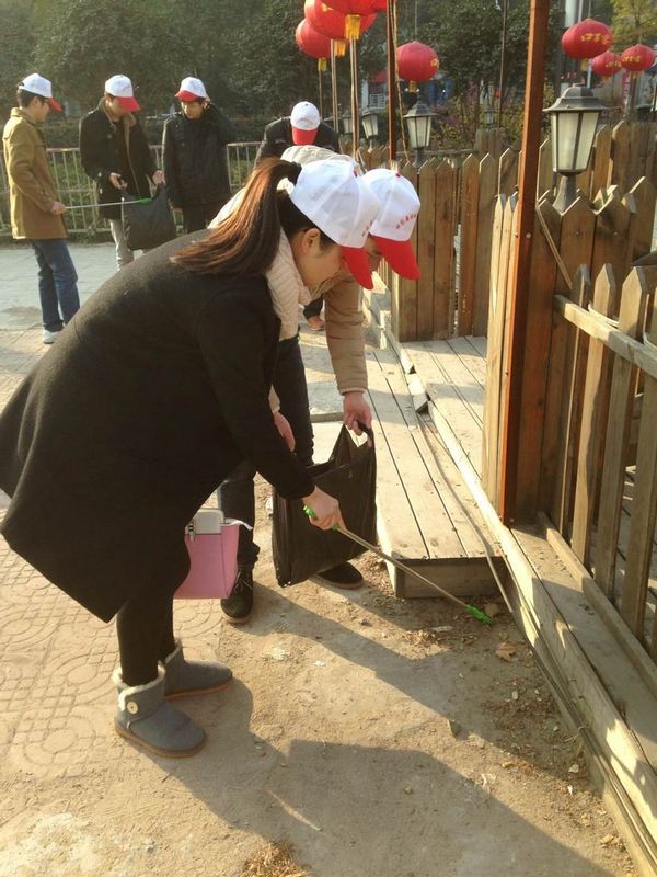 师生党员清洁龙湖公园南区公共区(摄影:杨洋)