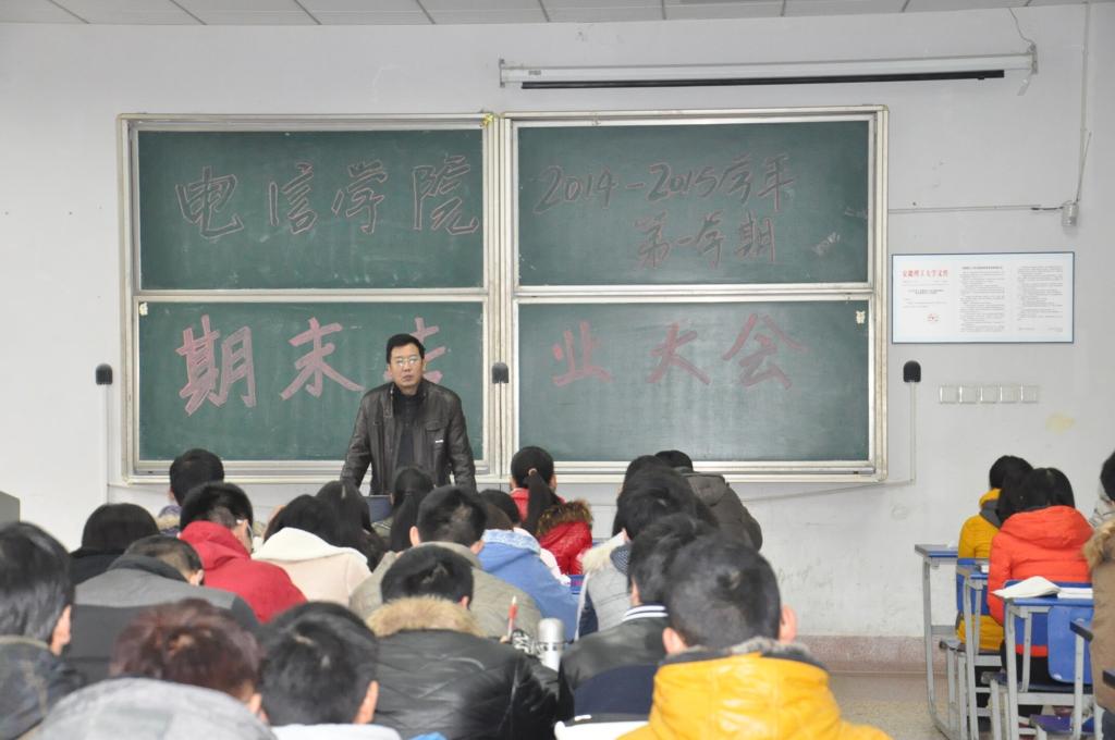 大会分别由各年级辅导员主持召开,会议主要内容有考前动员与诚信教育、假期安全注意事项和寒假生活合理规划等。大会要求广大同学要积极备考,诚信考试,获得属于自己的优异成绩;树立良好的安全责任意识,认真填写离校登记表,站好离校前的安全责任岗;合理规划自己的寒假生活,利用自己所学的专业知识,积极开展社会实践活动,争做社会主义核心价值观的宣传者和践行者。同时,对同学们进行了简短的安全知识培训,增强同学们的安全防范意识和遇到突发事件的应急处理能力。