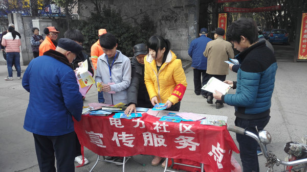 志愿者在电力小区发放政策宣传资料(摄影:裴佳晟)