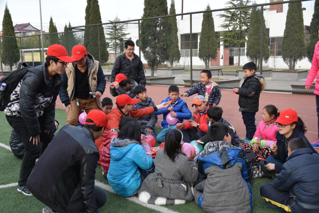 理学院志愿者们还与小朋友们进行游戏互动。大家纷纷参与进来,一起跳绳,参加捆腿跑等素质拓展活动。现场欢声笑语,孩子们的笑声和志愿者的爱心紧紧地融合在一起。最后,志愿者与孩子们一起合影留念。