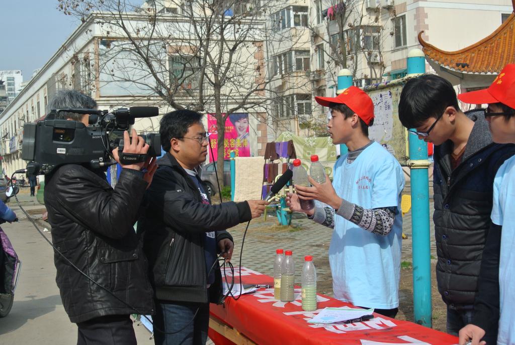 淮南电视台记者采访志愿者(摄影:邵飞)