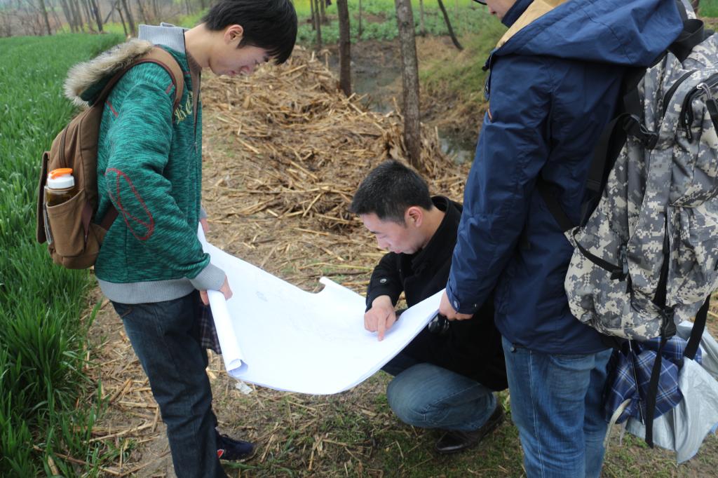师生在村庄进行现场勘察(摄影:尹琼琼)
