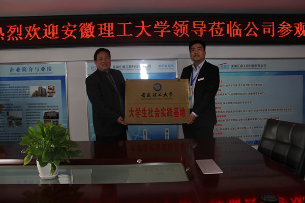 3月22日下午,能源与安全学院赴芜湖汇康工程科技有限公司挂牌实习基地和大学生社会实践基地。校实验室与设备管理处处长苏嘉银,校创新学院副院长张东速,院党委书记欧阳连勤、副书记金德、教学副院长袁树杰等参加了挂牌仪式。