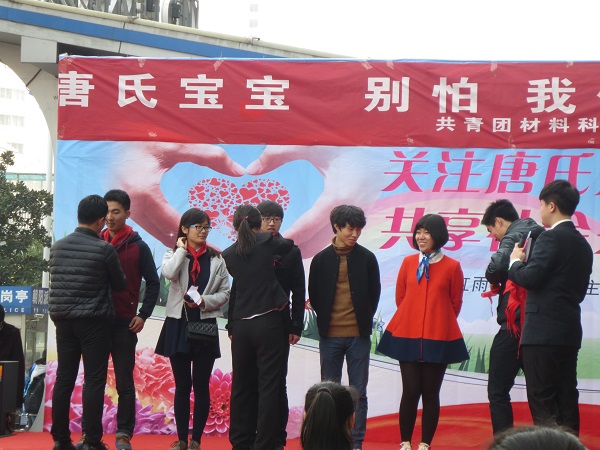 3月21日是“世界唐氏综合症日”,在这个特殊的日子里,为了唤起社会对唐氏综合症患者的关注,增进人们对唐氏宝宝的了解,材料科学与工程学院学生会联合淮南市“红雨伞”特教中心在淮南时代广场举办了“唐氏宝宝,别怕,我们爱你”义演活动。