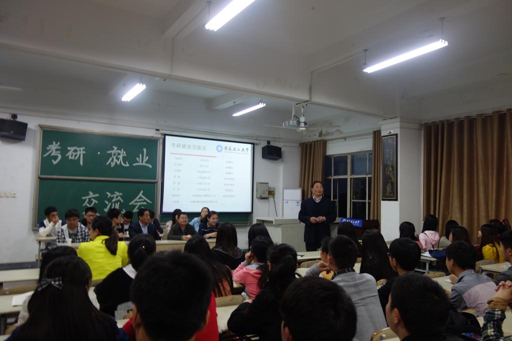 4月15日晚,人文社会科学学院在院401教室举办考研、就业交流会。院党总支副书记吴云平,政治学系、动画系部分专业课老师、学生辅导员应邀出席交流会。2011级8位成功考研、就业的同学,以及学院各专业低年级同学共70余人参加了交流会。
