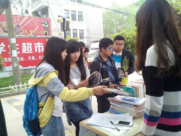 活动以图书漂流的形式,先向同学们征集书籍,然后再免费提供给他人借阅,借阅期限为一周。提供的书籍种类繁多,包括文学类、历史研究类、科学类等等,每本书里都贴了一张便利贴,借书的同学可以在上面写下自己的读后感,也可以给书的主人留下想说的话,以书会友、借书识友。丰富多彩的书籍吸引了众多同学驻足观赏,认真找寻着自己喜欢的书籍,活动现场气氛热烈。书籍借阅活动有序地进行着,为爱情湖增添了一抹亮丽的颜色。在活动持续的两天内,提供的近百本书籍都被来自不同学院和专业的爱书者借走。