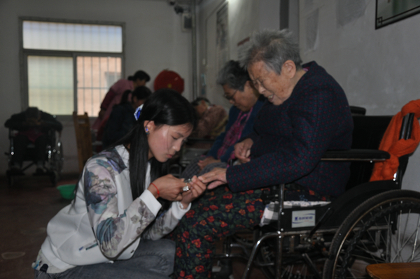 在公寓院长的带领下,志愿者们实地了解了老人的住宿、饮食、娱乐等方面的基本生活情况,为老人提供一些力所能及的帮助,对老年公寓进行了清扫,陪老人聊天,为老人剪指甲,给老人送去了温暖与关怀。