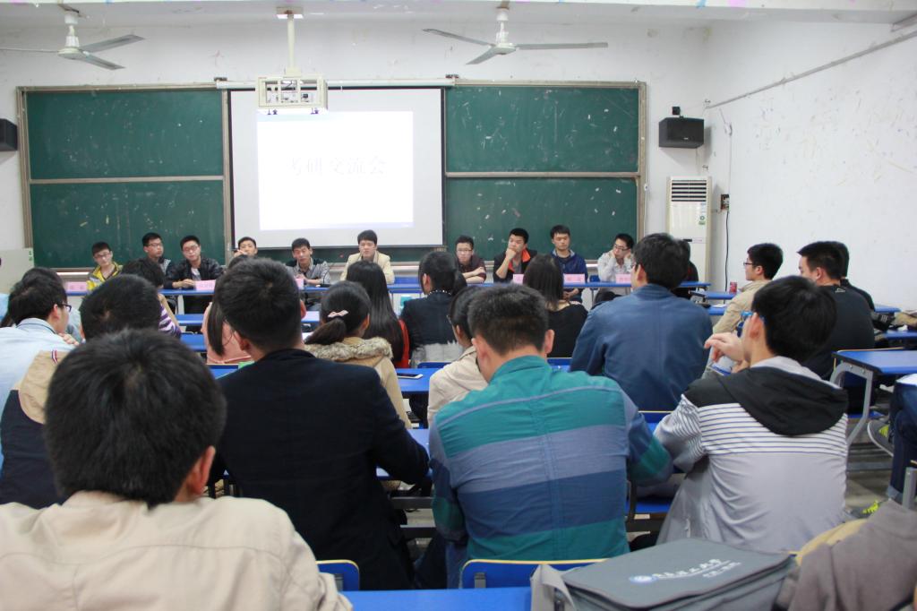 4月21日下午,理学院在学院二楼报告厅举行考研交流会。来自2011级各专业通过研究生入学考试的12名毕业生和2012级各专业有意向考研的120余名学生参加了交流会。