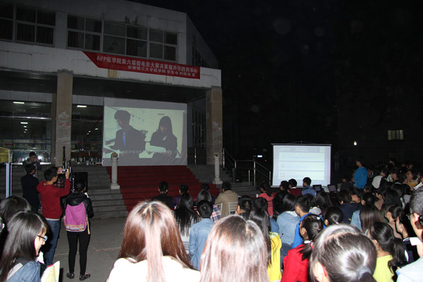 镜头定格永恒,青春诠释激情。4月16日晚,由医学院团委主办的第六届微电影大赛在西校区食堂北门广场隆重举行。院团委副书记魏元一、2013级辅导员陈冉等担任评委,朦朦夜色之中西区近400名师生齐聚一堂观看比赛。