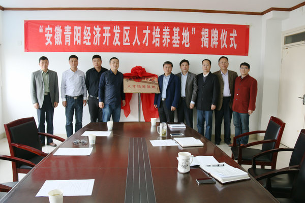 4月22日,“安徽青阳经济开发区人才培养基地”揭牌仪式在机械工程学院会议室隆重举行。安徽青阳经济开发区管委会监察室主任王新平、管委会土地规划局副局长李冬春、经济开发区人力资源服务中心主任储芳润、区创新科技服务有限公司工程部经理吴志辉,机械工程学院院长王传礼、副院长张新及相关教研室主任参加了揭牌仪式。