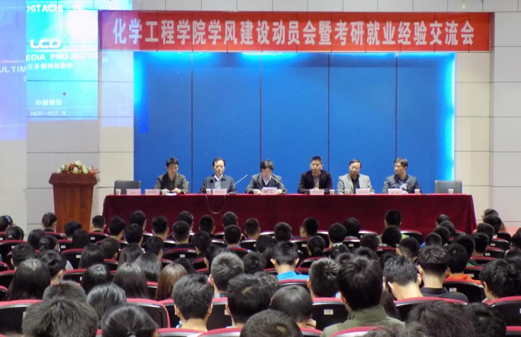为进一步深入做好学风建设工作,充分发挥学生骨干的模范带头作用,营造积极向上的学习氛围,4月22日晚,化学工程学院在北校区图书馆二楼报告厅召开学风建设动员会暨考研就业经验交流会。院党委书记徐冬生、院长何杰分别作动员讲话。学院全体党政领导先后为学生党员、学生干部代表授予胸牌。