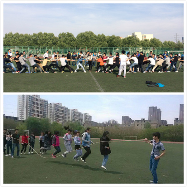 4月21日下午,机设14-7班与机设14-8班的同学们在足球场开展了一场拔河比赛。比赛的哨声一响,队员们一起高呼着“一二,一二……”,双手紧握长绳,卯足了劲拼命往后拉。号子声、呐喊声、加油声,此起彼伏,飘荡在整个足球场上空。
