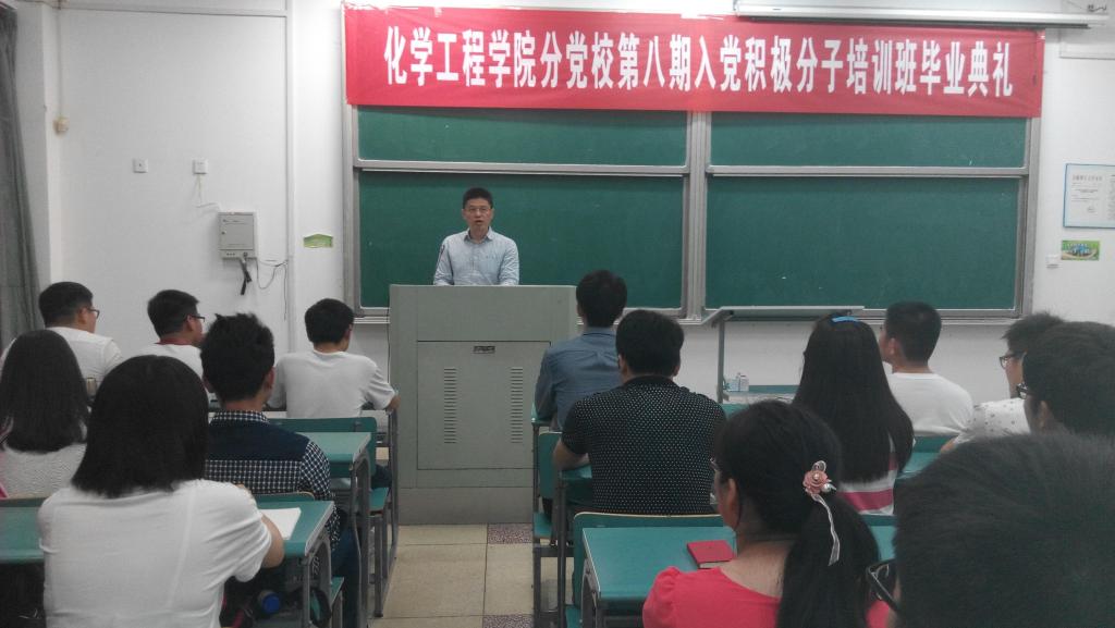 4月28日晚,化学工程学院分党校第八期入党积极分子培训班毕业典礼在北实205隆重举行。分党校校长、学院党委书记徐冬生出席典礼并讲话。学院党委副书记、分党校副校长徐泽绵,培训班班主任、辅导员及培训合格的学员参加了毕业典礼。毕业典礼由学院党委秘书魏敏主持。