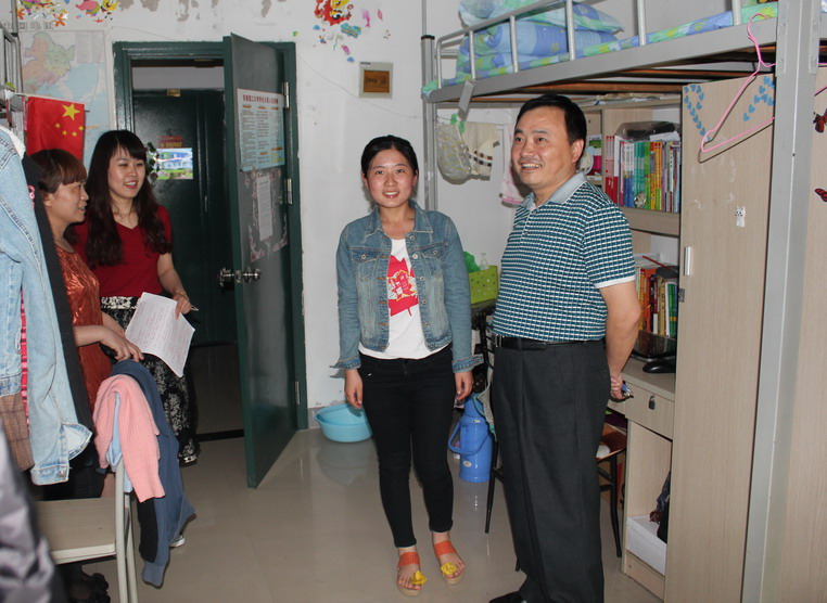 五一节前后,学院党委书记、院长石秀光走访了学生宿舍,作为英语2012-1班的联系人,他与班级班干座谈,关切地询问了同学们的学习、生活情况和对职业规划的想法,广泛征求了同学们对学院教学和管理方面的意见和建议,并叮嘱同学们防火防盗,注意安全。