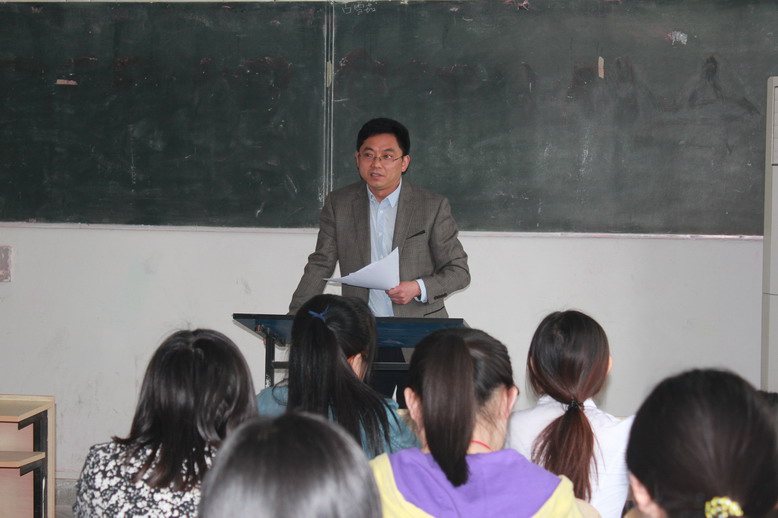 5月7日下午,学院科研副院长王宗华在七楼会议室与联系班级英语2012-4班的同学见面。作为英语专业教师,王宗华首先结合自身专业教学和学习经验,为学生作了专业学习方法指导。针对大三学生存在的考研与就业的选择困惑、心理压力较大、就业定位不准、观望情绪较浓等问题,他从历年英语专业学生就业相关数据分析、专业特点、人力资源需求等方面,分析解释就业形势与就业策略,勉励同学们在“知己”、“知彼”的前提下,做出正确选择。他对同学们提出三点要求:一是学生无论考研还是就业,都要坚持不断学习,提高自身素质;二是要培养良好情商;三是要提高实践能力,积极主动地走出校门,走进社会,加强与老师和同学的交往,丰富社会知识,提高实践能力。