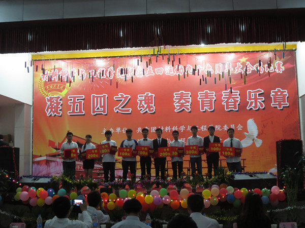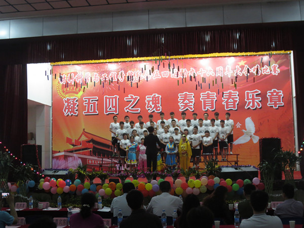 5月10日晚,材料科学与工程学院在北区大学生活动中心举办了以“凝五四之魂,奏青春乐章”为主题的大合唱比赛。校学生处副处长陈楠,校团委副书记彭晶,学院党委书记何昌珏、院长朱金波、党委副书记范洪喜等学院领导观看了比赛并担任评委。2014级全体班主任受邀担任嘉宾,2014级全体学生参加了本次比赛。