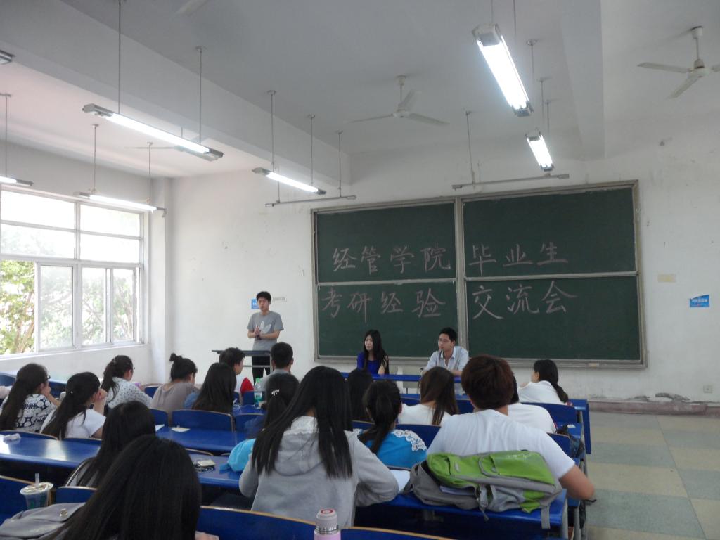 为帮助同学们了解考研和就业相关问题,提高2012级学生考研和就业竞争力,5月16日上午,经管学院分别在2202和2102教室举行优秀毕业生考研、就业经验交流会。学院党委副书记、辅导员以及2011级优秀学生、2012和2013级学生参加了此次交流活动。