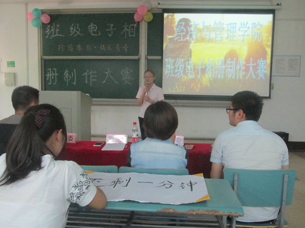 为增强班级凝聚力,铭记更多青春精彩瞬间,5月16日下午,经济与管理学院于北实206教室举办2014级班级电子相册制作大赛。