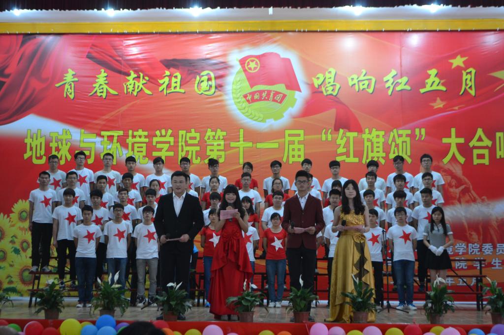 5月23日下午,地球与环境学院在北校区大礼堂举办第十一届“红旗颂”大合唱比赛,用雄壮激扬的青春豪情,歌唱亲爱的祖国。校学生处处长田中良、校团委副书记彭晶,学院党政领导,各学院团委书记及学院全体辅导员出席并观看了演出。